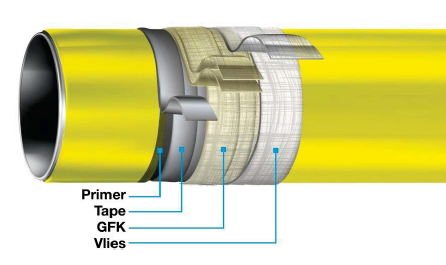 Mechanicky vysoce odolný protikorozní systém sestávající z izolace DENSOLEN a ochranné vrstvy ze světlem tvrzeného obalu GFK